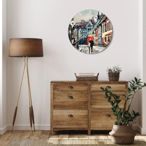 Motivet af en regnfuld gade med en paraply passer perfekt til interiører i en romantisk, moderne eller klassisk stil. Detaljerigdommen og farverigdommen får dette ur til at tiltrække opmærksomhed og blive omdrejningspunktet for ethvert rums udsmykning. Det er det perfekte valg for dem, der værdsætter subtil elegance og unikke accenter i deres hjem.