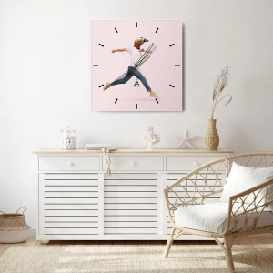 Uret er fremstillet af 4 mm tykt sikkerhedsglas. Urets fremstillingsteknologi er i overensstemmelse med sikkerhedsklasse 2B2 i henhold til EN 12600:2004, hvilket garanterer slagfasthed. Uret på glas er klar til at blive hængt op - det har et metalophæng fastgjort på bagsiden af uret og en skumafstandsholder til at regulere urets lige afstand fra væggen. Uret har en lydløs mekanisme, der drives af et 1,5 V - AA-batteri (batteri medfølger ikke).