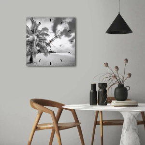 Uret på glas er klar til at hænge på væggen, det er udstyret med en monteret metalophæng for nem montering
