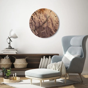 - Uret forestiller gyldne græsser, der svajer i vinden i lyset fra den nedgående efterårssol. Den naturlige komposition, fuld af varme toner, bringer en atmosfære af fred og naturens charme til interiøret.