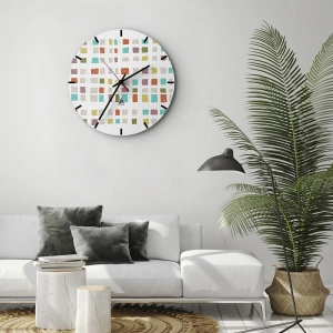 Vægur med et farverigt firkantet motiv er en kombination af geometri, farver og moderne stil. Det bringer friskhed, harmoni og kreativitet til et interiør, samtidig med at det tjener et praktisk formål. Det er et fremragende valg for dem, der leder efter enkle, men udtryksfulde dekorative elementer.