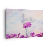 Lærredstryk - Billede på lærred - En danser i en blomsterkjole mod en pastelfarvet baggrund - 70x50cm - Delikat som en blomst - Moderne vægdekoration til stue og soveværelse ARTTOR