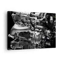 Lærredstryk - Billede på lærred - Nærbillede af metalmotordele på sort baggrund - 70x50cm - Stål, smuk, stærk - Moderne vægdekoration til stue og soveværelse ARTTOR