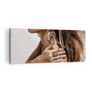 Lærredstryk - Billede på lærred - I et lyserødt tørklæde - 100x40 cm