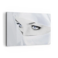Lærredstryk - Billede på lærred - Et portræt af en sur grønøjede skønhed med grønne øjne - 100x70 cm
