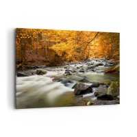 Lærredstryk - Billede på lærred - Et vandløb i den gyldne skov - 120x80 cm