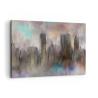 Lærredstryk - Billede på lærred - En sammensætning af stål, sten og tåge - 120x80 cm