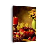 Lærredstryk - Billede på lærred - Stilleben med brød og frugt - 50x70 cm