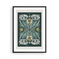 Plakat i sort ramme - Symmetrisk mønster med blade og øjne på en mørk baggrund - 50x70cm - Som en folkeudskæring - Moderne vægdekoration til stue og soveværelse ARTTOR