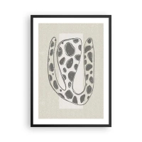 Plakat i sort ramme - Abstrakt organisk form i grå nuancer - 50x70cm - Bizart væsen - Moderne vægdekoration til stue og soveværelse ARTTOR
