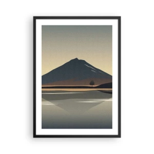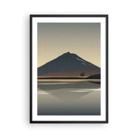 Plakat i sort ramme - Et minimalistisk bjerglandskab med en spejling i en sø - 50x70cm - Spejlrefleksion - Moderne vægdekoration til stue og soveværelse ARTTOR