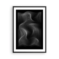 Plakat i sort ramme - Minimalistiske bølger i sort-hvid - 50x70cm - Lysets dans i rummet - Moderne vægdekoration til stue og soveværelse ARTTOR