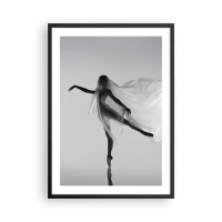 Plakat i sort ramme - En danser i et luftigt slør i en sort-hvid komposition - 50x70cm - Lethed og ynde - Moderne vægdekoration til stue og soveværelse ARTTOR