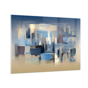Billede på glas - Geometriske penselstrøg i blå og beige nuancer - 70x50cm - Blå konstruktion - Moderne vægdekoration til stue og soveværelse ARTTOR