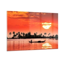 Billede på glas - Tropernes ro ved solnedgang - 120x80 cm