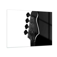 Billede på glas - Sort og hvid basguitarhoved med skygge - 70x50cm - Stilhed i klipper - Moderne vægdekoration til stue og soveværelse ARTTOR