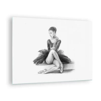Billede på glas - Skitse af en ballerina i en sort kjole i en eftertænksom positur - 70x50cm - Fortryllet af dans - Moderne vægdekoration til stue og soveværelse ARTTOR