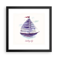 Plakat i sort ramme - Fulde sejl og roligt vand - 30x30 cm