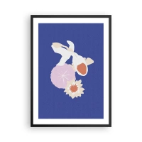 Plakat i sort ramme - Koi-fisk omgivet af blomster mod en intens baggrund - 50x70cm - Sammensætning af blomster og knopper - Moderne vægdekoration til stue og soveværelse ARTTOR