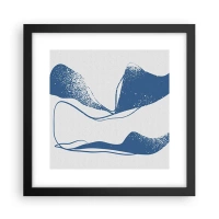 Plakat i sort ramme - Hvide og blå bølger - 30x30 cm