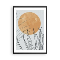 Plakat i sort ramme - En minimalistisk komposition med månen og græsset - 50x70cm - Altid mod solen - Moderne vægdekoration til stue og soveværelse ARTTOR