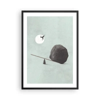 Plakat i sort ramme - En minimalistisk skala med en sten og en figur mod månens baggrund - 50x70cm - En drøm går i opfyldelse - Moderne vægdekoration til stue og soveværelse ARTTOR