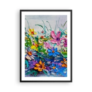 Plakat i sort ramme - En blomsterkomposition malet med en tyk tekstur og levende farver - 50x70cm - Overhovedet ikke et stilleben - Moderne vægdekoration til stue og soveværelse ARTTOR
