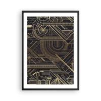Plakat i sort ramme - Geometrisk mønster i gyldne nuancer på sort baggrund - 50x70cm - Koncepter, idéer, planer - Moderne vægdekoration til stue og soveværelse ARTTOR