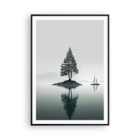 Plakat i sort ramme - Et ensomt træ på en ø med en refleksion i vandet - 50x70cm - En drøm - Moderne vægdekoration til stue og soveværelse ARTTOR
