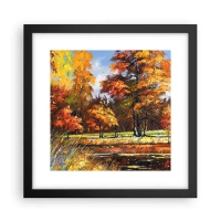 Plakat i sort ramme - Landskab i guld og bronze - 30x30 cm