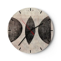 Vægur, Uret - Sorte geometriske former på en beige baggrund med en linnedtekstur. - 30x30cm - Etnisk abstraktion - Moderne vægdekoration til stue, køkken og soveværelse ARTTOR