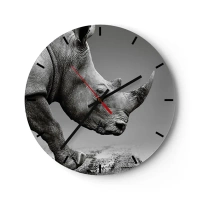 Vægur, Uret - Et næsehorn i sort-hvid stil på en neutral baggrund - 30x30cm - En ustoppeli - Moderne vægdekoration til stue, køkken og soveværelse ARTTOR