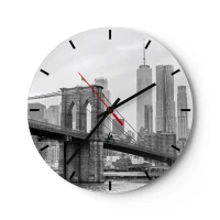 Vægur, Uret - Brooklyn Bridge mod byens skyline i sort og hvid - 30x30cm - New York stemning - Moderne vægdekoration til stue, køkken og soveværelse ARTTOR