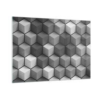 Billede på glas - Geometriske terninger i grå nuancer - 70x50cm - Kubistisk puslespil - Moderne vægdekoration til stue og soveværelse ARTTOR