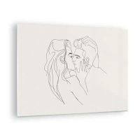 Billede på glas - Et sensuelt kys af et par i konturlinjen - 70x50cm - Forviklet i følelser - Moderne vægdekoration til stue og soveværelse ARTTOR