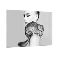 Billede på glas - Dame med en chinchilla - 100x70 cm