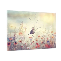 Billede på glas - Fugleportræt med en eng i baggrunden - 100x70 cm