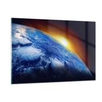 Billede på glas - Solopgang over den blå planet - 120x80 cm