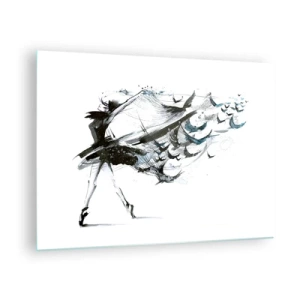 Billede på glas - Danser i bevægelse med svævende fugle - 70x50cm - Musikkens magi sætter dig fri - Moderne vægdekoration til stue og soveværelse ARTTOR