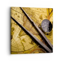 Vægur, Uret - Antik kort med kompas og kompas - 30x30cm - Hvor er skattene? - Moderne vægdekoration til stue, køkken og soveværelse ARTTOR