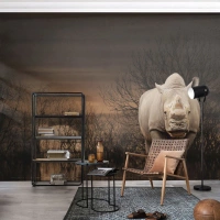 Fototapet på mål Premium Sand - Hvidt mod naturen - Næsehorn, Dyr, Afrika