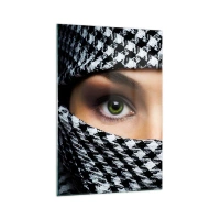 Billede på glas - Et portræt af en sur grønøjede skønhed med grønne øjne - 70x100 cm