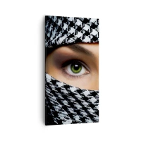 Lærredstryk - Billede på lærred - Et portræt af en sur grønøjede skønhed med grønne øjne - 55x100 cm