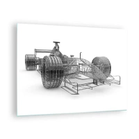 Billede på glas - Teknisk tegning i 3D-stil af en racerbil - 70x50cm - Ideelt design - idéen om dynamik - Moderne vægdekoration til stue og soveværelse ARTTOR