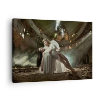 Lærredstryk - Billede på lærred - To figurer i ruiner med et lysspil - 70x50cm - Ånden i det gamle teater - Moderne vægdekoration til stue og soveværelse ARTTOR