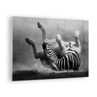 Billede på glas - En zebra ligger ned i den afrikanske savanne - 70x50cm - Ikke kun en hest ville grine - Moderne vægdekoration til stue og soveværelse ARTTOR