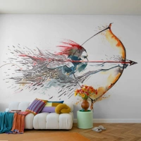 Fototapet Standard Eco - Bueskytte i en dynamisk akvarelillustration - 100x70cm - Mytisk kriger med en brændende bue - Moderne vægdekoration til stue og soveværelse ARTTOR