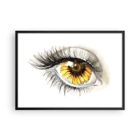 Billede på glas - Et øje med et solsikkemotiv omgivet af fine detaljer - 70x50cm - Et look lige så varmt som sommeren - Moderne vægdekoration til stue og soveværelse ARTTOR