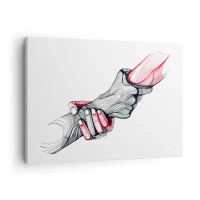 Lærredstryk - Billede på lærred - Kunstneriske hænder, der holder hinanden i minimalistisk stil - 70x50cm - Du er i gode hænder - Moderne vægdekoration til stue og soveværelse ARTTOR