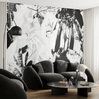 Fototapet Standard Eco - Abstrakte sorte og hvide blomster - 100x70cm - Efterår i det negative - Moderne vægdekoration til stue og soveværelse ARTTOR